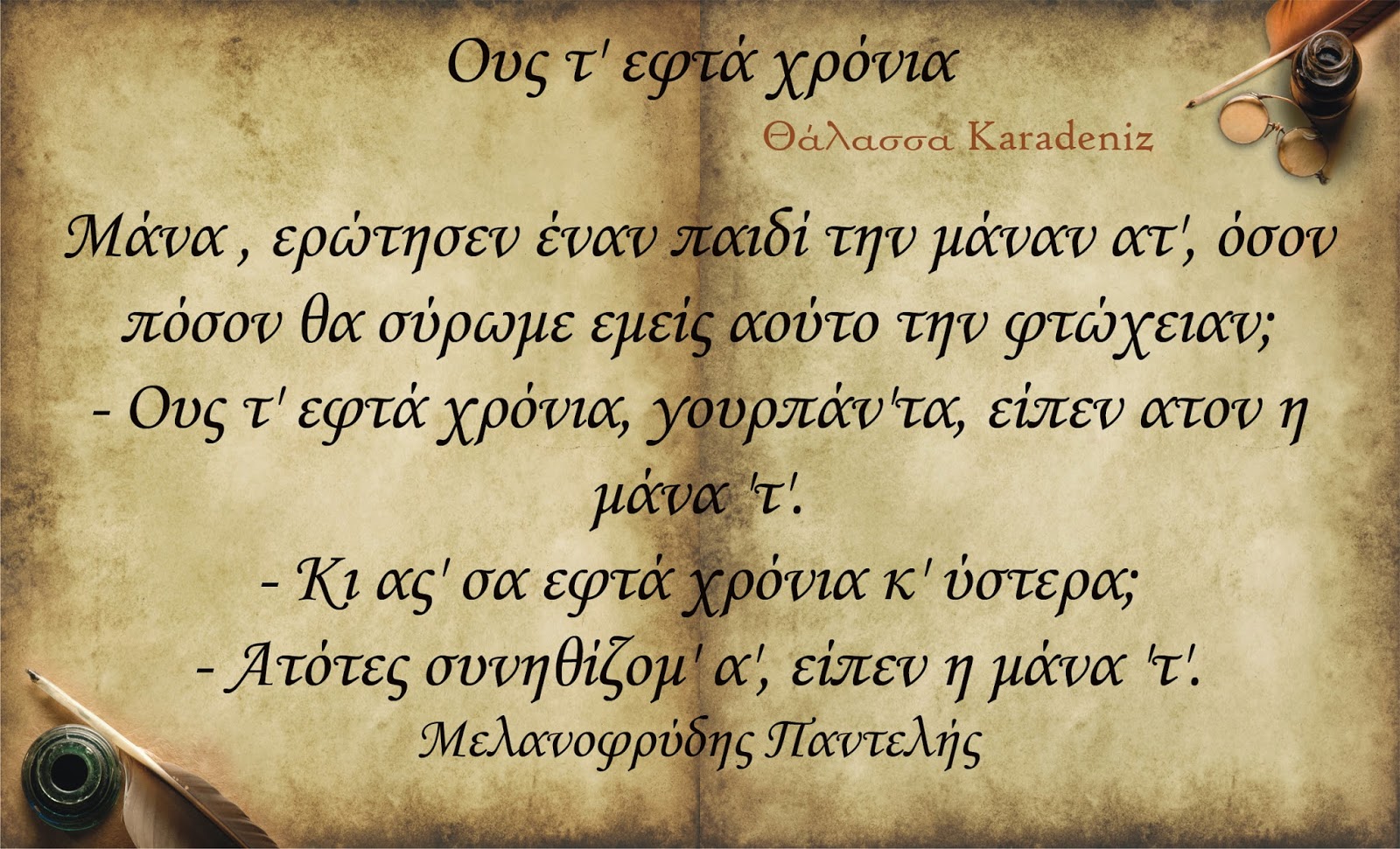 εσίμωσαν έναν μωρόν παιδίν π’ επούλ’νεν με την ταβλάν κρεμαγμένον ας σην γούλαν αθε, ψιλικά.
