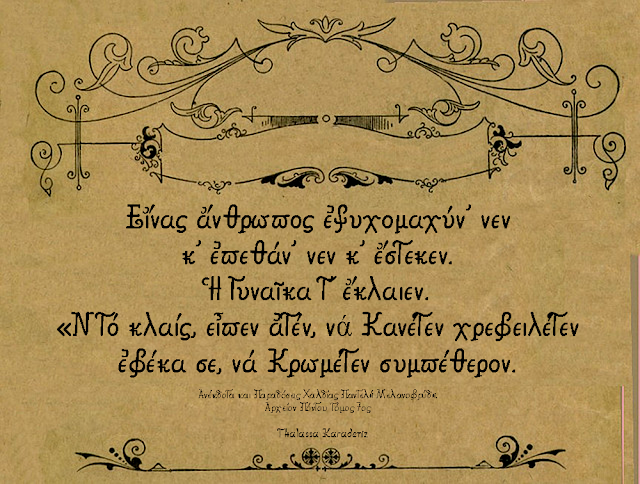 ’Σ σην Τραπεζούνταν εβραίοι ’κ’ έσαν. Έναν καιρόν τη Πόλ’ς οι εβραίοι είπαν: